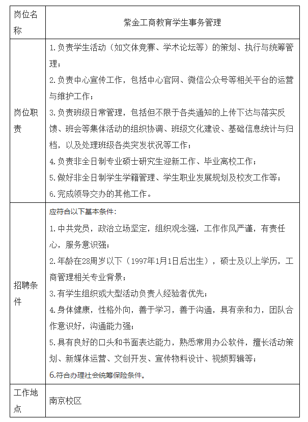 南京理工大学经济管理学院紫金工商教育中心负责此次招聘的问题咨询。