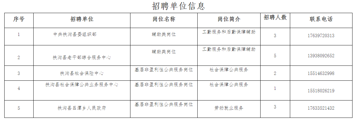 为进一步加大公益性岗位开发力度,促进我县就业困难人员就业,根据《河南省人民政府关于进一步做好稳就业工作的实施意见》(豫政[2020]14号)、《河南省人力资源和社会保障厅、河南省财政厅关于印发河南省公益性岗位管理办法的通知》(豫人社办[2020]23号),按照公平、公正的原则,在“扶沟县人民政府政务服务网站”平台上发布招聘信息。为做好这项工作,特发布如下招聘公告。