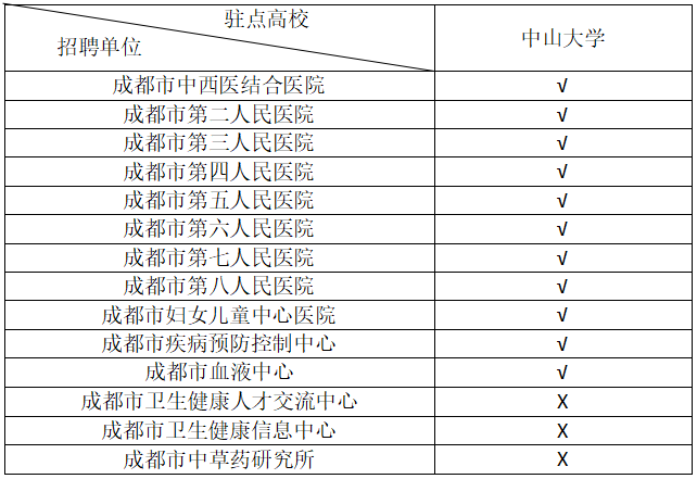 注:“√”表示招聘单位在中山大学设立现场报名点,“X”表示招聘单位未在中山大学设立现场报名点。