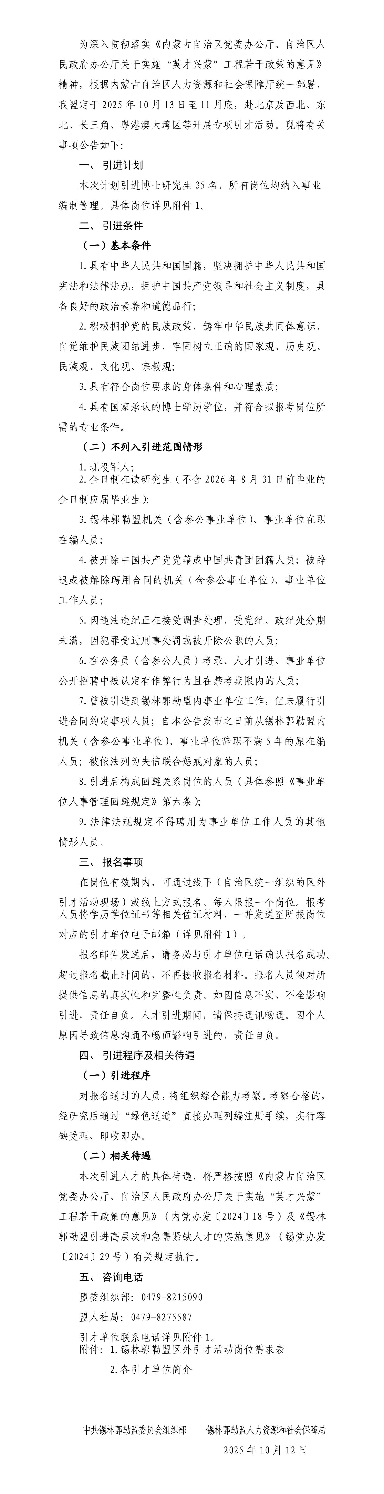 原始标题: 锡林郭勒盟关于开展2025年区外专项引才活动的公告