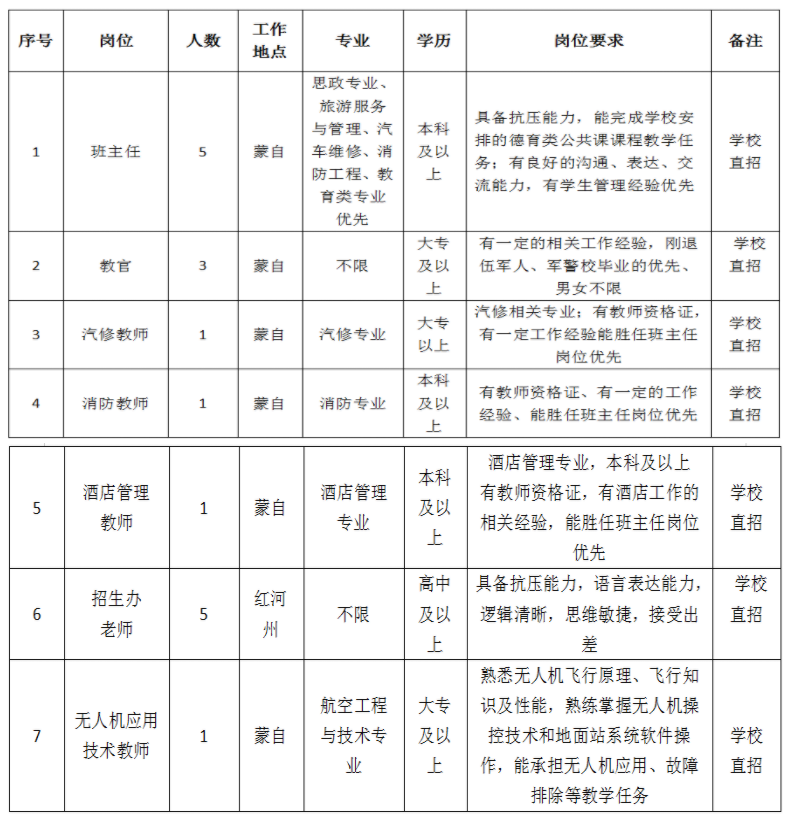 原始标题:昆明华航技工学校蒙自校区招聘简章