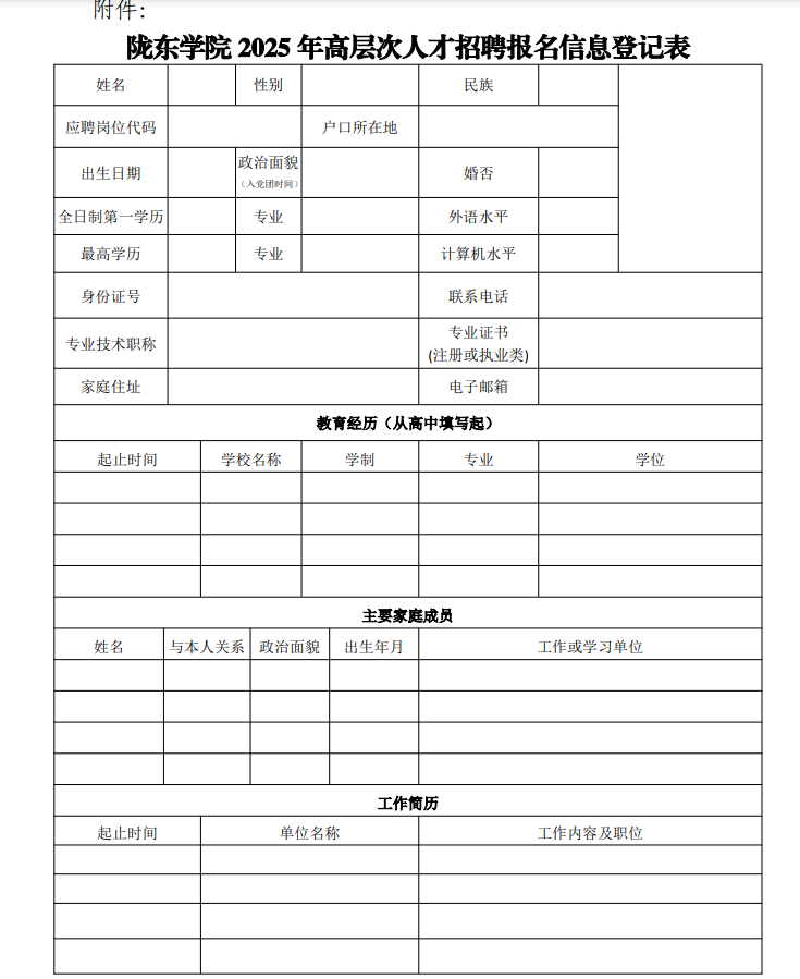 附件:陇东学院2025年高层次人才招聘报名信息登记表