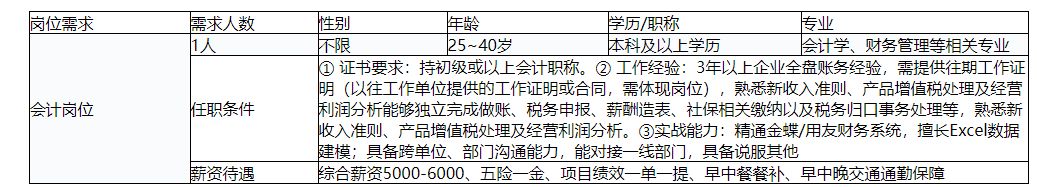公司根据业务开展需要,现招聘会计专员一名,招聘事宜公告如下: