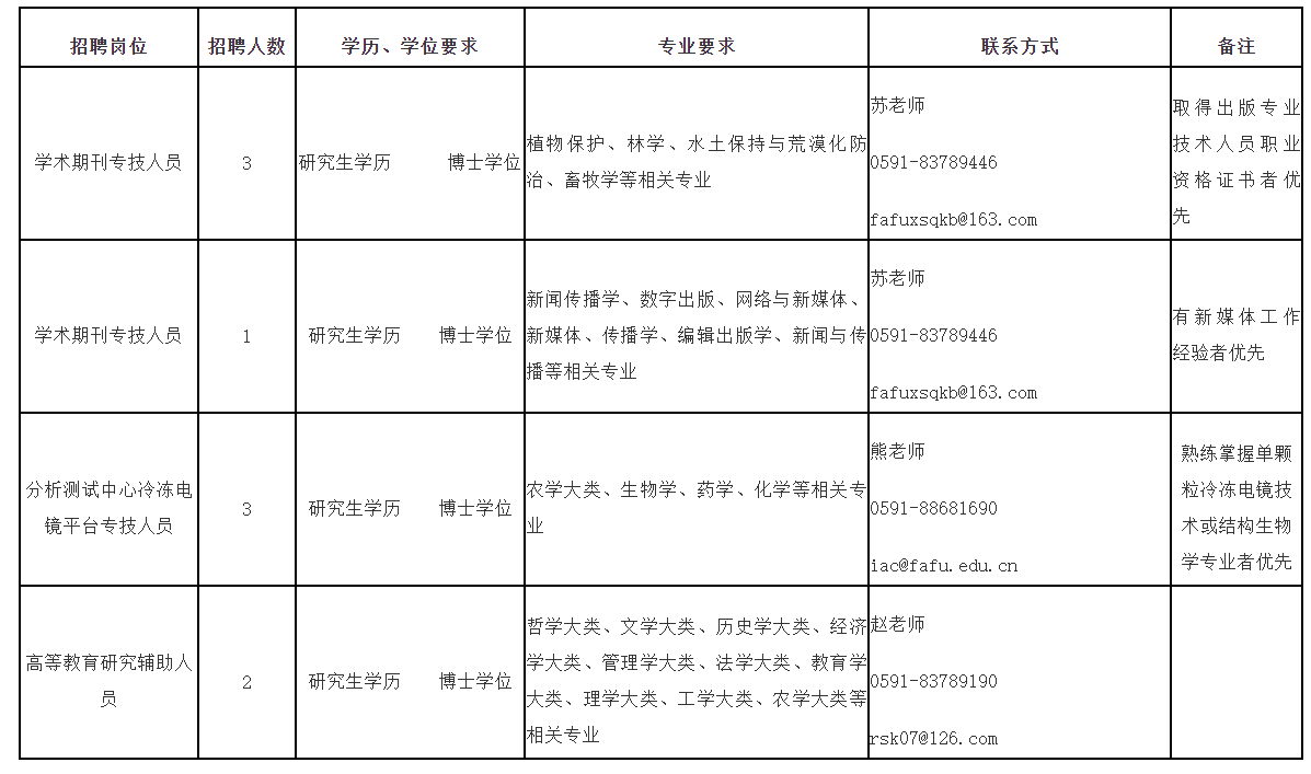 人事处联系人:肖老师赵老师联系电话:0591-83789190
