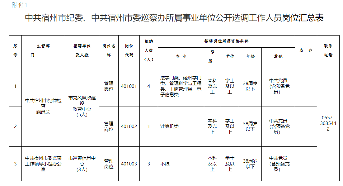 原始标题:中共宿州市纪委、中共宿州市委巡察办所属事业单位公开选调工作人员公告
