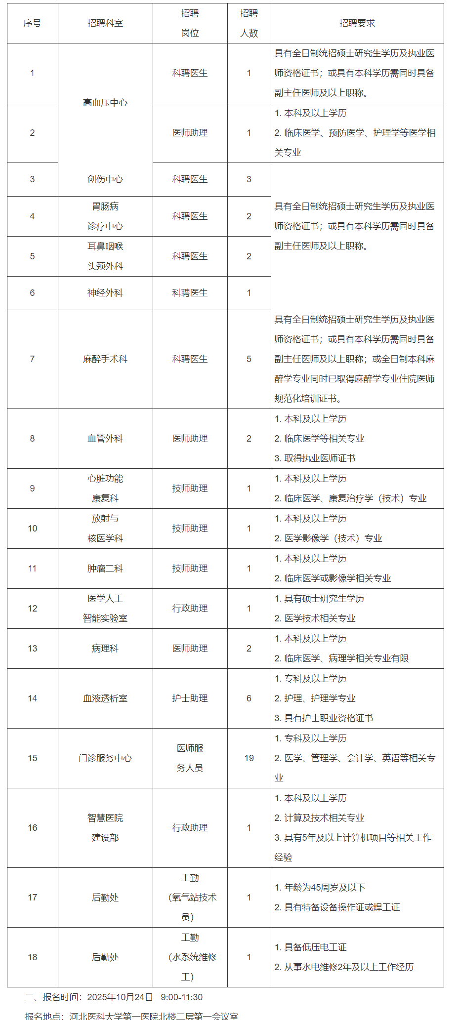 原始标题:河北医科大学第一医院医疗工作人员招聘公告