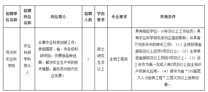 七、本《公告》由苏州市农业科学院负责解释。招聘政策咨询电话:0512-66704216。
