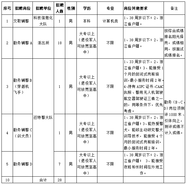 原始标题:天台县公安局警务辅助人员招聘公告,招28名!