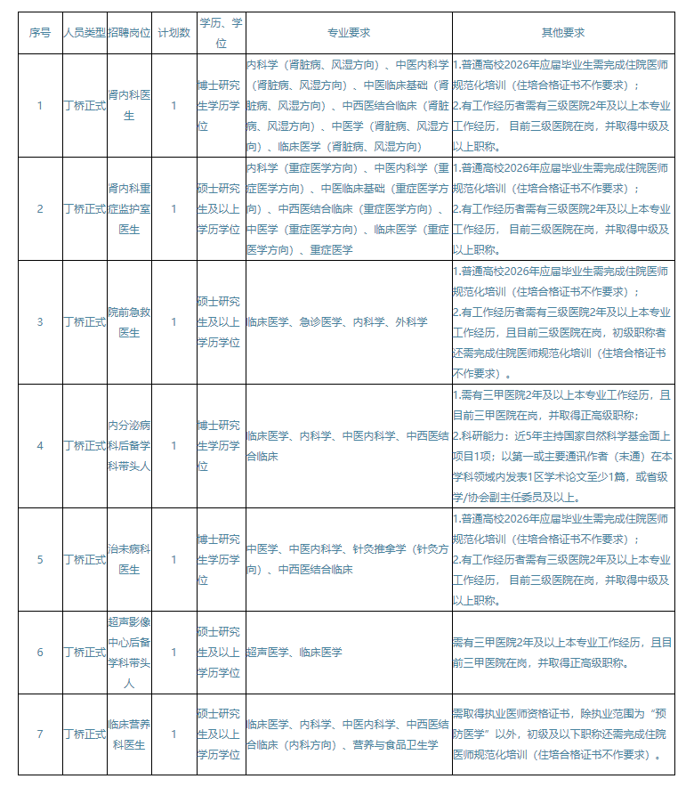 杭州丁桥中医院是杭州市卫健委所属的财政适当补助事业单位。因医院业务发展需要,面向社会公开招聘高层次人才,现将具体岗位公告如下。