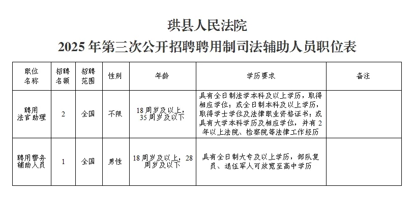 原始标题:珙县人民法院2025年第三次公开招聘聘用制司法辅助人员公告