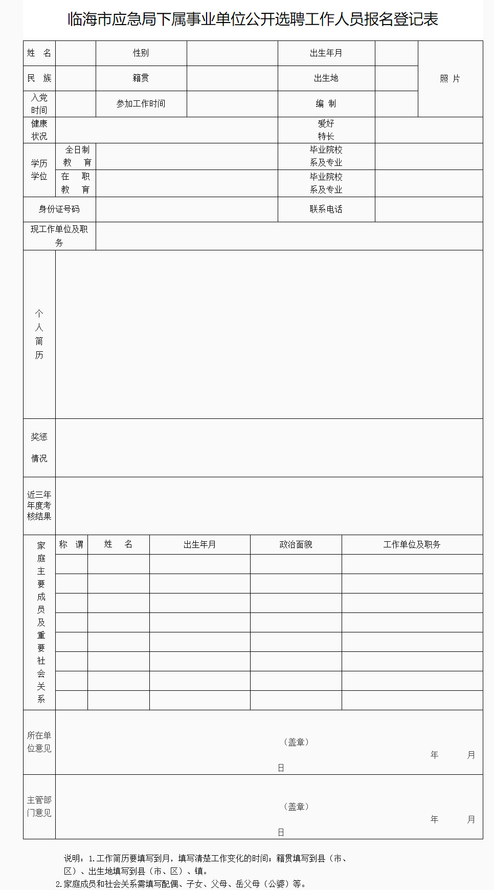 附件:临海市应急局下属事业单位公开选聘工作人员报名登记表