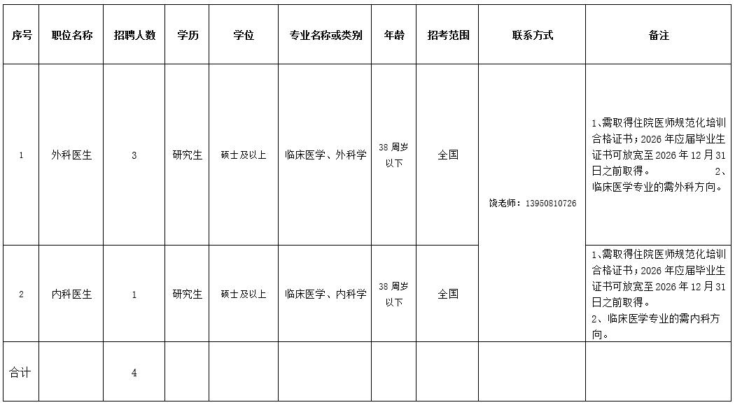 根据《事业单位人事管理条例》等有关规定,为及时补充医学专业技术人才,以促进新罗区医疗事业的发展,我院定于2025-2026年度赴高校公开招聘医学类紧缺急需专业毕业生,现将有关事项如下: