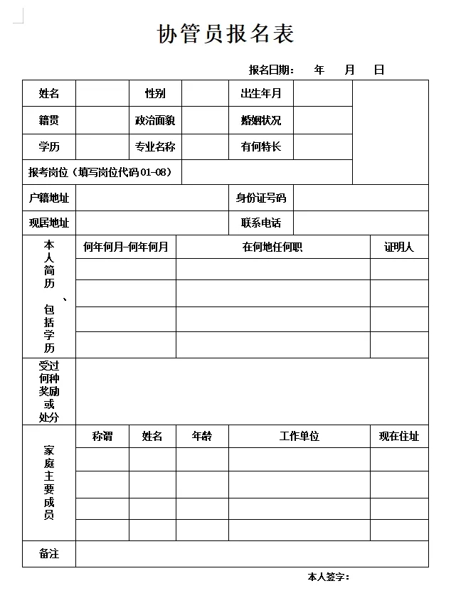 (3)经本人填写签字确认的《协管员报名表》(附件2);