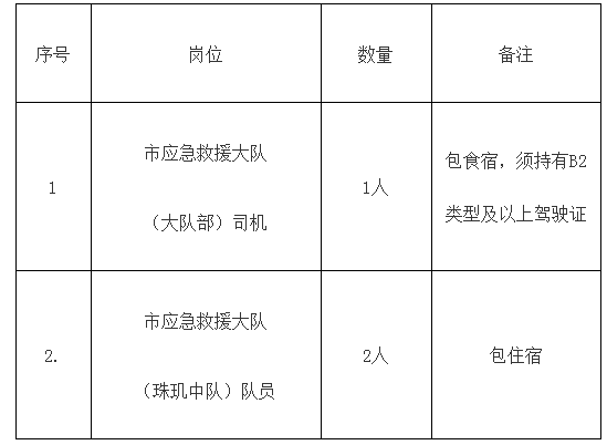 应聘市应急救援大队(珠玑中队)队员岗位要求18-30周岁男性(即1995年10月31日-2007年10月31日出生的);