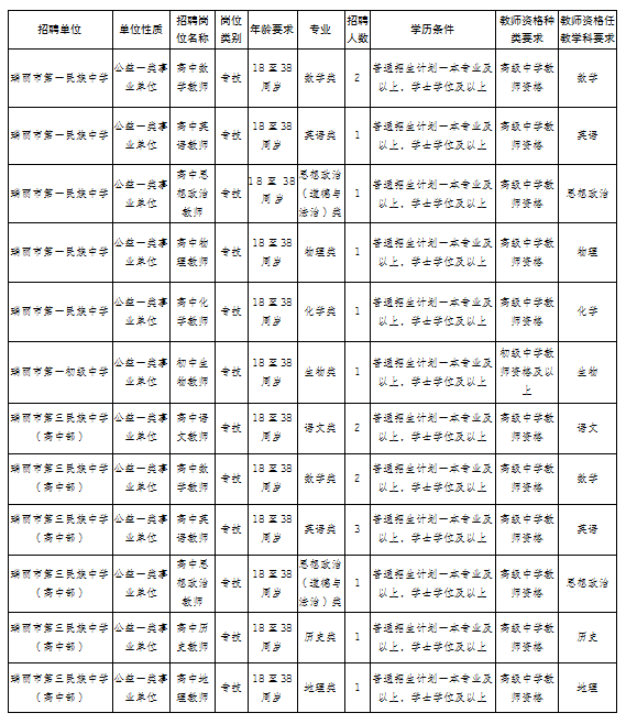 为加强教师队伍建设,改善专业技术人员队伍结构,缓解教师队伍人才紧缺问题,进一步提高教育教学质量,根据《云南省事业单位公开招聘工作人员办法》(云人社发〔2016〕12号)及《2026年德宏州教育部门考核招聘紧缺专业学科优秀人才工作方案》,我市教体系统考核招聘紧缺专业学科优秀人才32名。现将有关事宜公告如下: