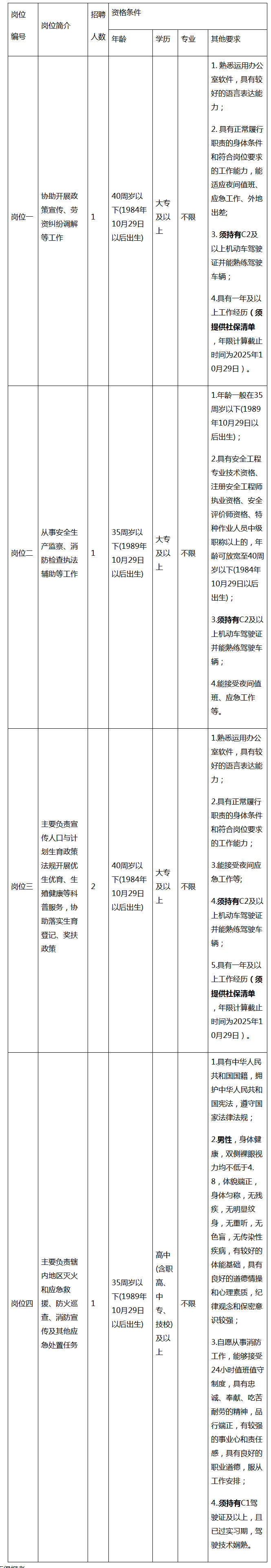 4.报名资料:《凤阳街道招聘报名表》(岗位一、二、三填写,贴本人近期彩色免冠照片,见附件1)、《凤阳街道微型消防站队员报名表》(岗位四填写,贴本人近期彩色免冠照片,见附件2)、本人身份证正反面、户口簿户主页和本人页(属集体户口的须提供加盖公章的户主页复印件及本人页原件)、学历证书、学位证书(如有)、机动车驾驶证、社保清单(岗位一、三须提供)。报考岗位二,符合年龄放宽条件的,需提供报名要求的技术资格证书或中级职称证书。所有证件、材料均要求提供原件及复印件(A4规格,原件在校验后退还本人)。以上材料缺一不可,否则视为不符合报名资格。