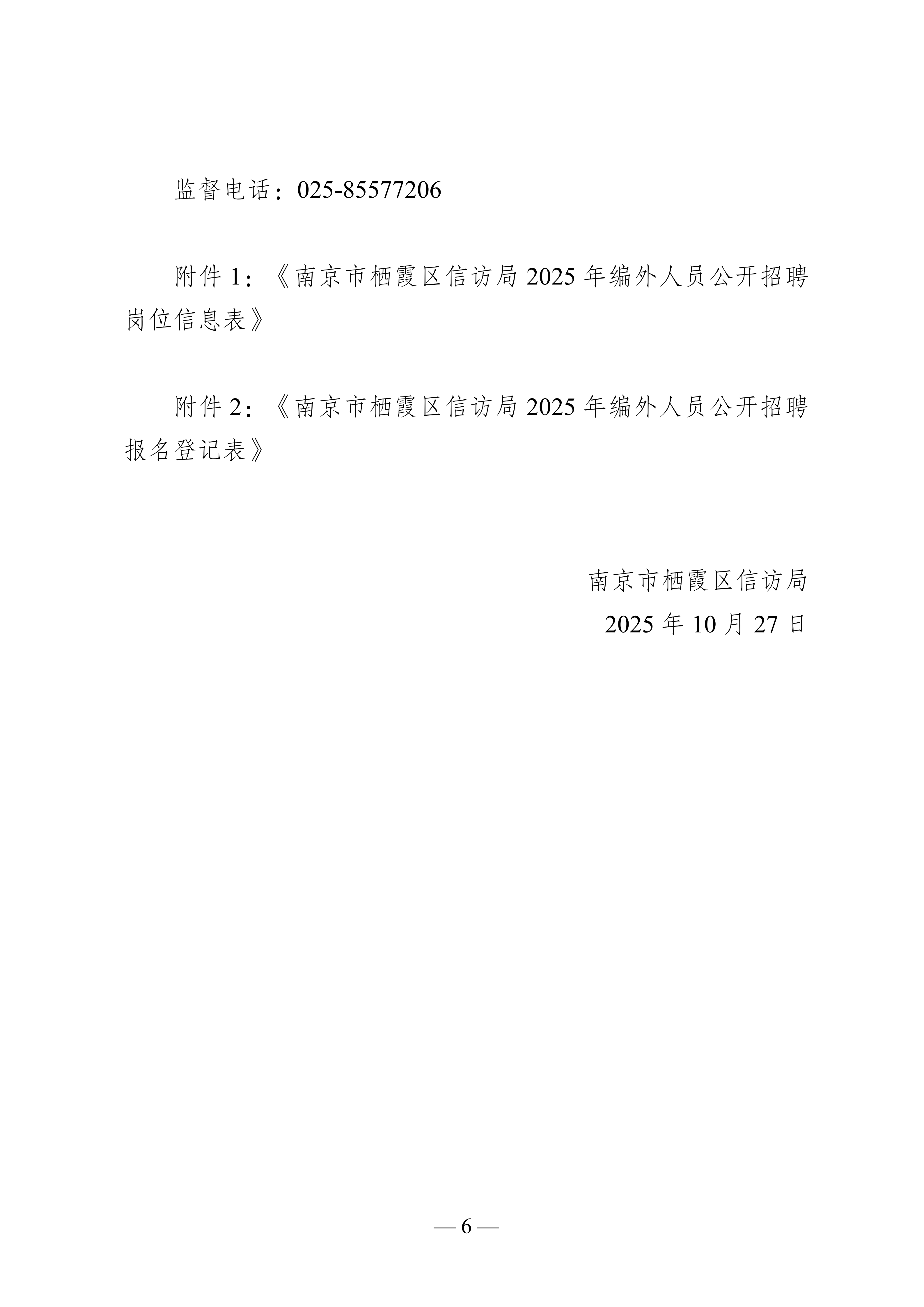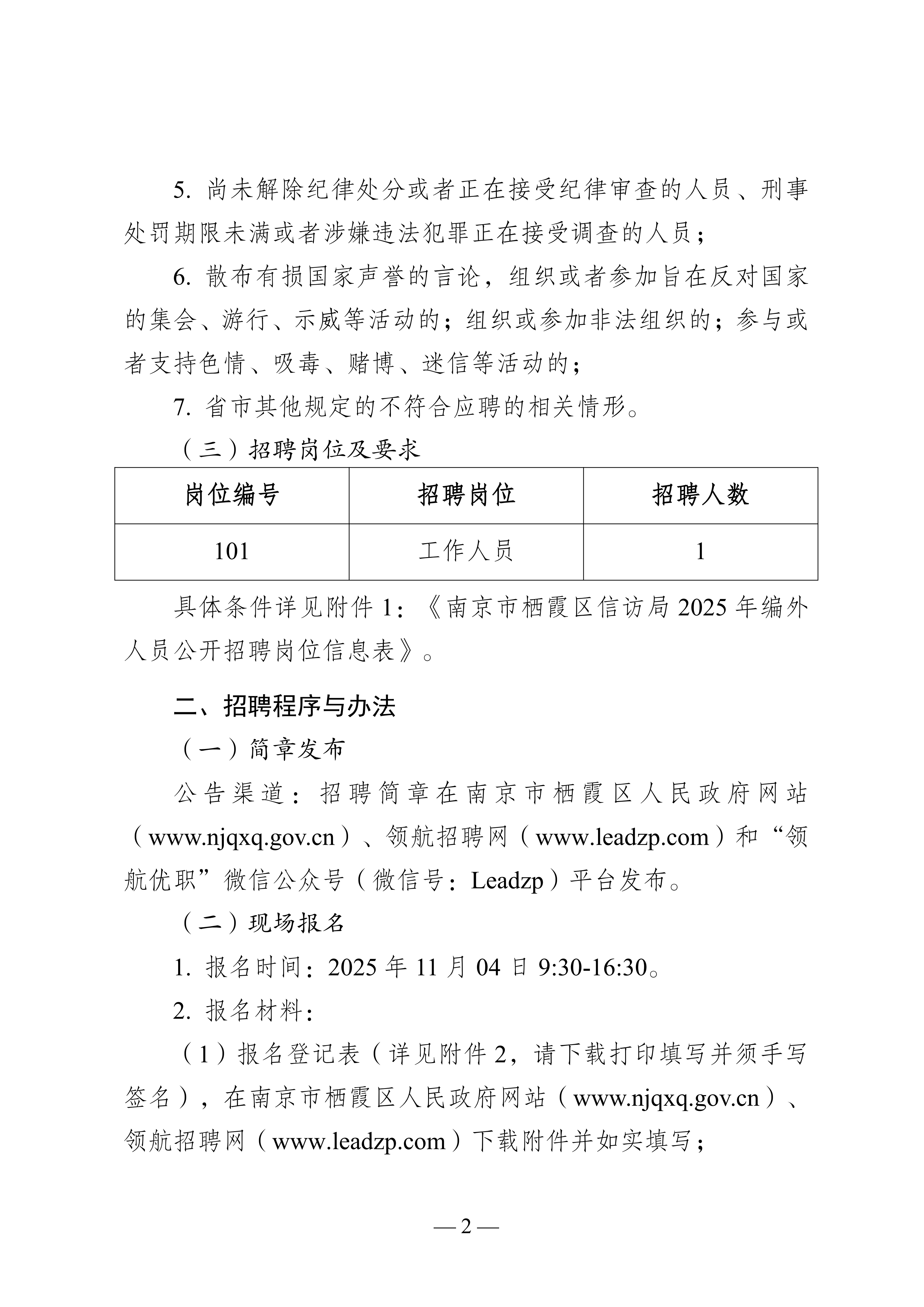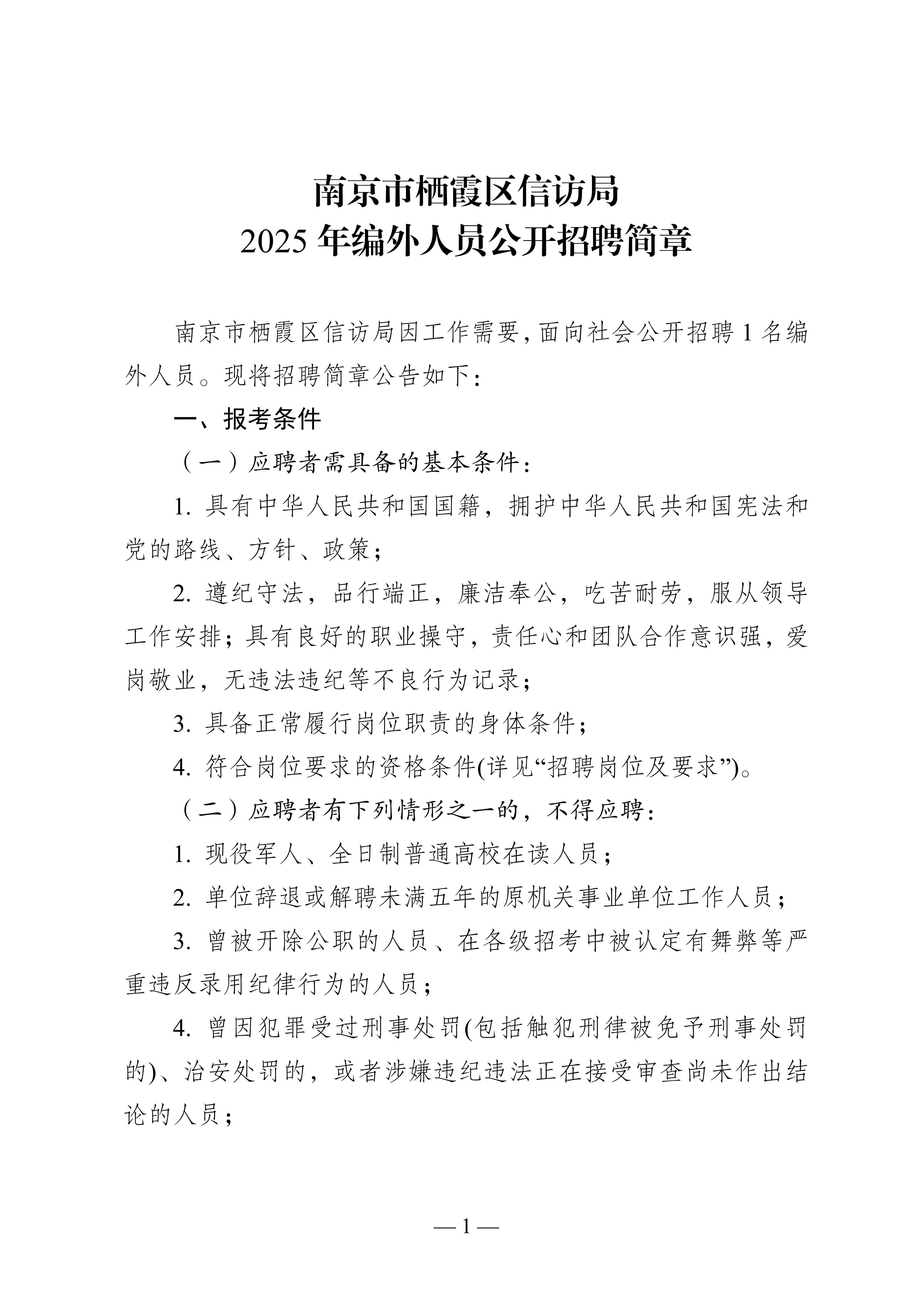 原始标题:南京市栖霞区人民政府南京市栖霞区信访局2025年编外人员公开招聘简章