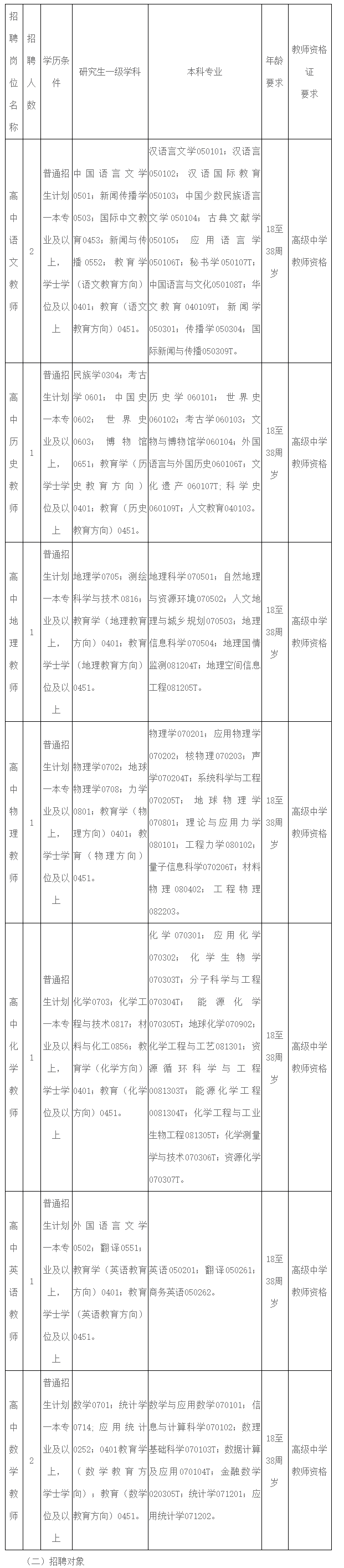 2.普通招生计划一本专业及以上学历2024年、2025年、2026年优秀毕业生,所学专业与招聘教学岗位要求相符(未在编在岗,在校期间总体成绩优异,所学专业必修科目无挂科且须在资格复审时提供相应的教师资格证)。