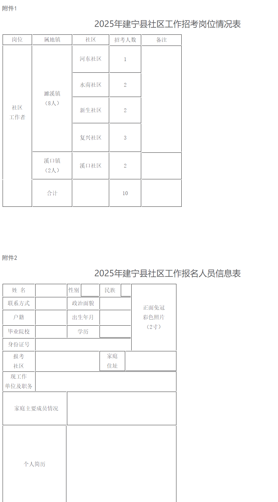 附件:1.2025年建宁县社区工作招考岗位情况表