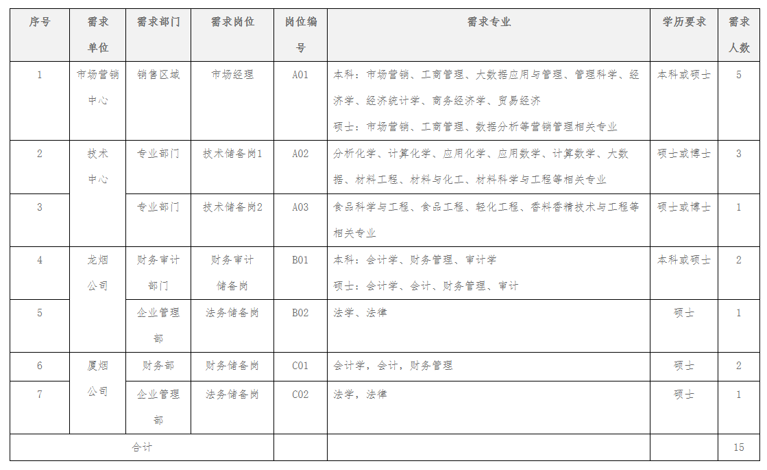 备注:专业知识指的是指与需求专业相关的基础知识,非特指烟草行业专业知识。