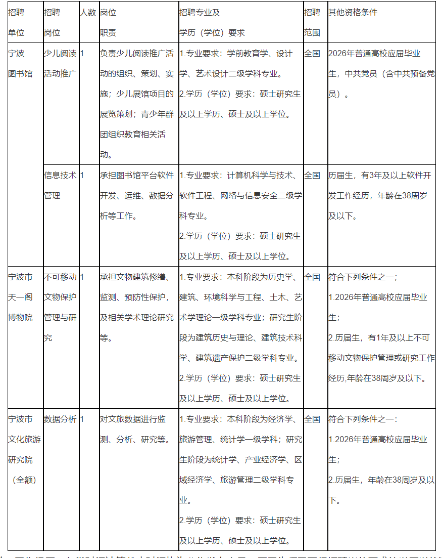 原始标题:宁波市文化广电旅游局属事业单位公开招聘工作人员公告