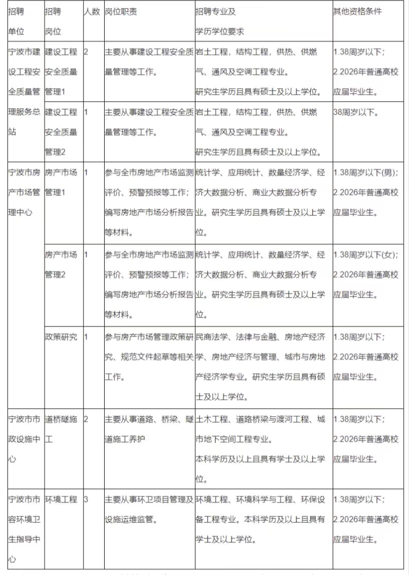 原始标题:宁波市住房和城乡建设局局属事业单位公开招聘公告