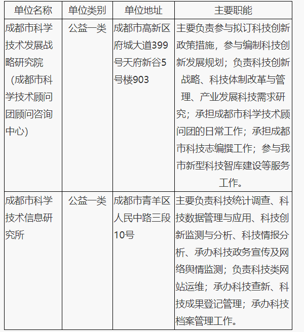 (1)招聘单位:成都市科学技术发展战略研究院(成都市科学技术顾问团顾问咨询中心)