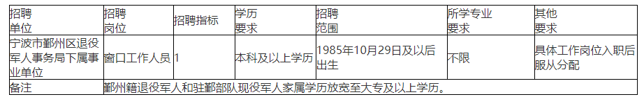 原始标题:宁波市鄞州区退役军人事务局下属事业单位招聘编外人员公告