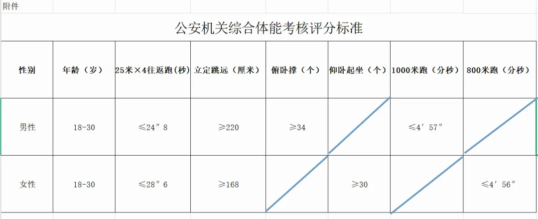 3.测试内容:参照《公安机关综合体能考核评分标准》(附件)执行。