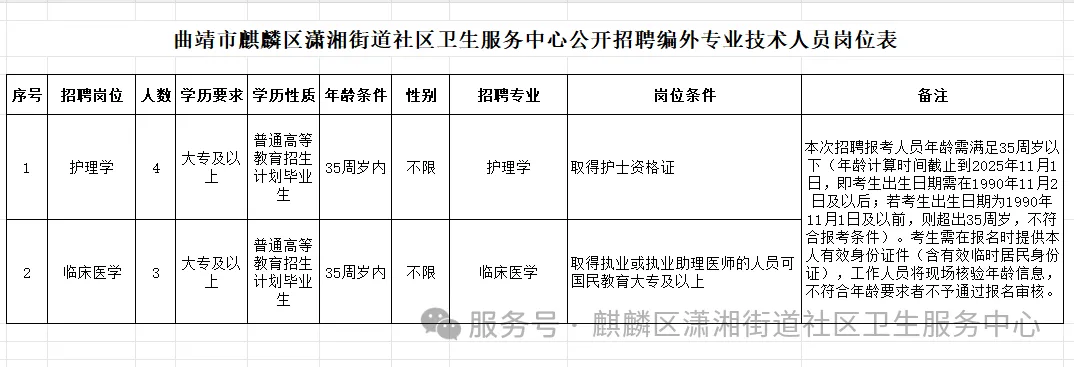 招聘相关信息在“麒麟区潇湘街道社区卫生服务中心”微信公众号发布。