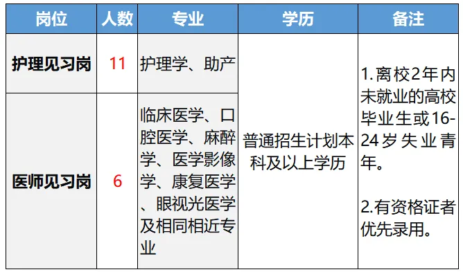 根据全县就业见习工作安排,结合我院工作需求,特面向社会公开招录见习岗人员17名,现将有关事宜公告如下: