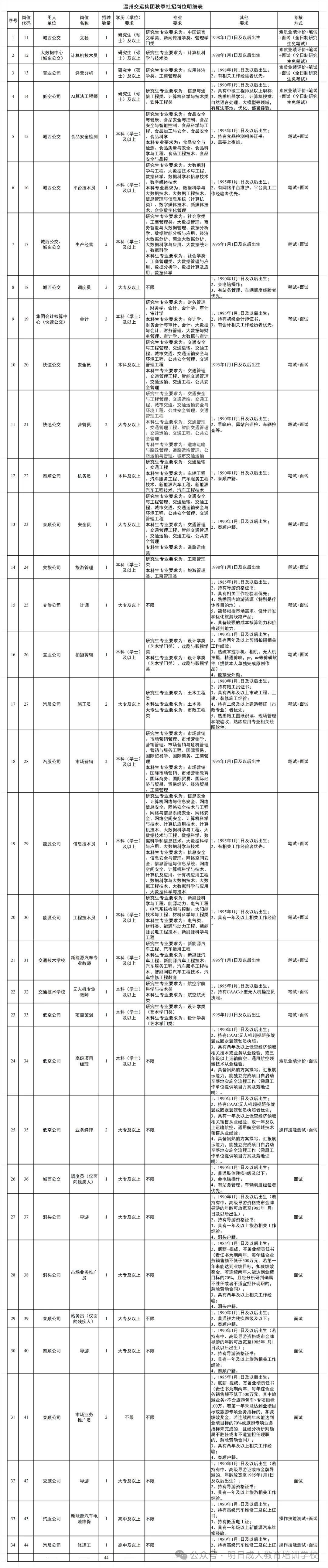 原始标题:国有企业|温州交运集团2025年秋季公开招聘44人工作人员公告