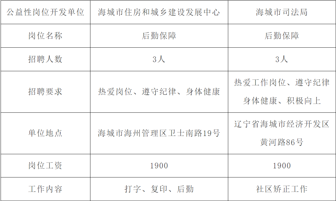 原始标题:海城市住房和城乡建设发展中心、海城市司法局公益性岗位招聘公告-通知公告-海城市