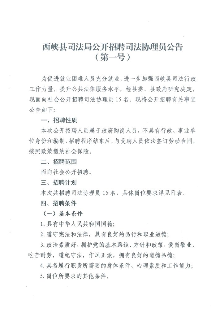 原始标题:西峡县司法局公开招聘司法协理员公告(第一号)