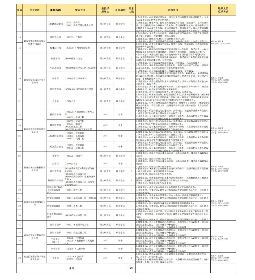 为深入贯彻落实青海省委人才工作部署,进一步加强省交控集团人才队伍建设,积极引进高学历、高素质青年人才,现面向社会公开发布校园引才岗位38岗45人,现将有关事项公告如下:
