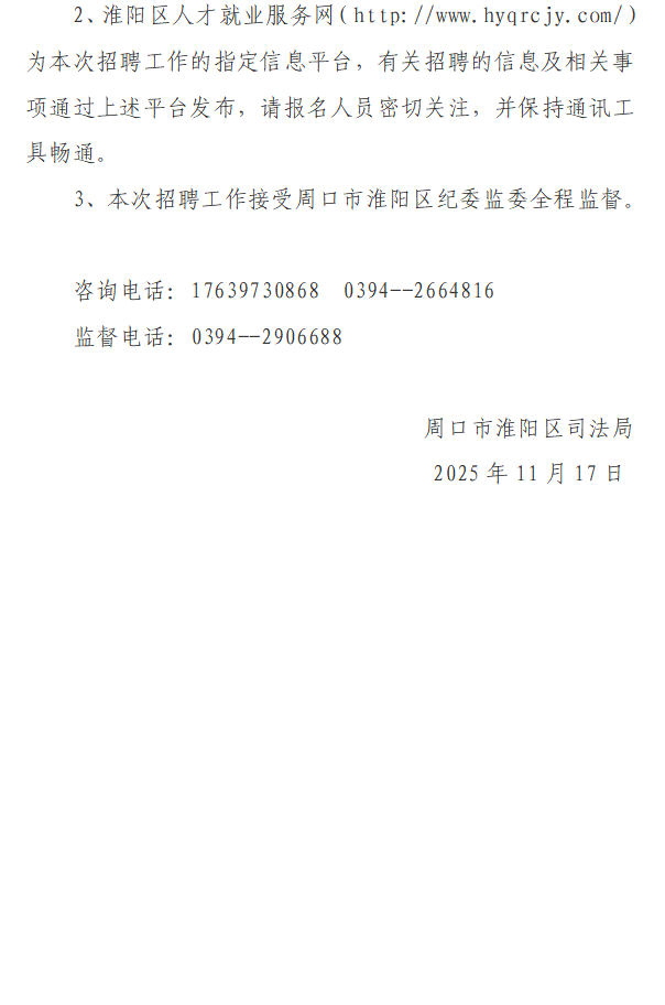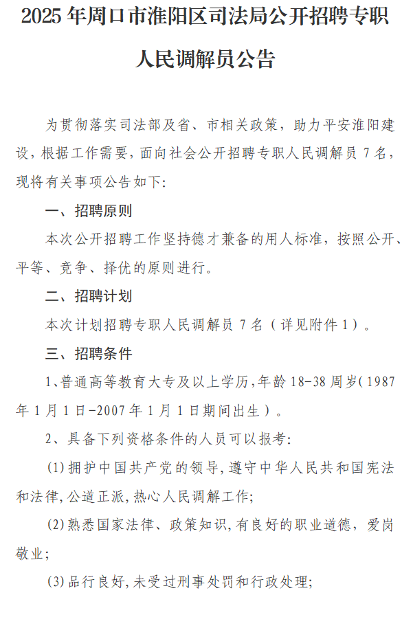 原始标题:2025年周口市淮阳区司法局公开招聘专职人民调解员公告