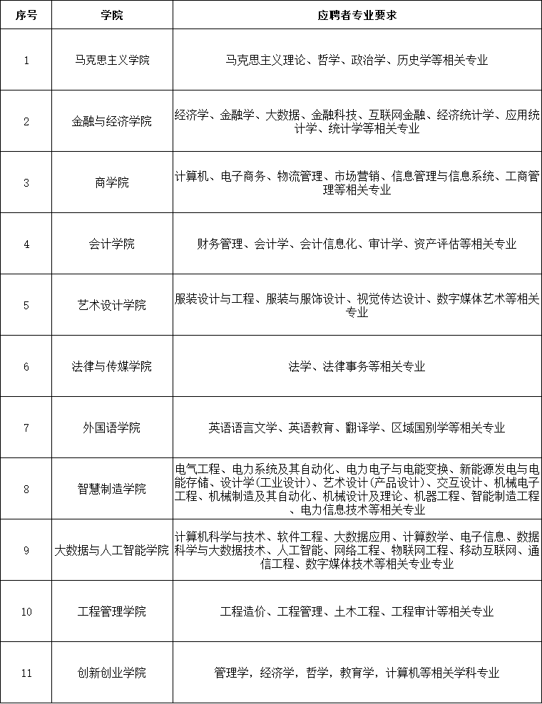 2.专任教师要求硕士研究生毕业并获得硕士学位,本硕专业相同或相近;一直在高校从事教学工作并取得讲师任职资格可适当放宽。