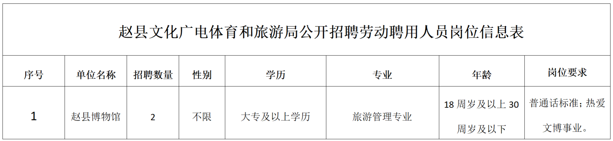 附件1:《赵县文化广电体育和旅游局公开招聘劳动聘用人员岗位信息表》