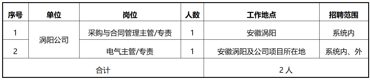 根据工作需要,现招聘安徽公司涡阳公司相关岗位。具体事项公告如下: