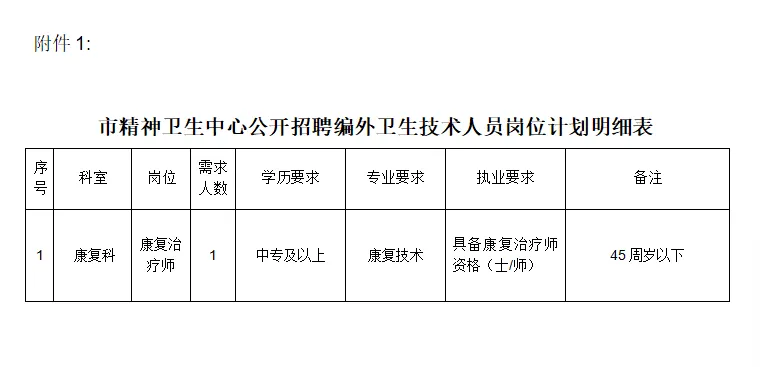 附件:1、市精神卫生中心公开招聘编外卫生技术人员岗位计划明细表
