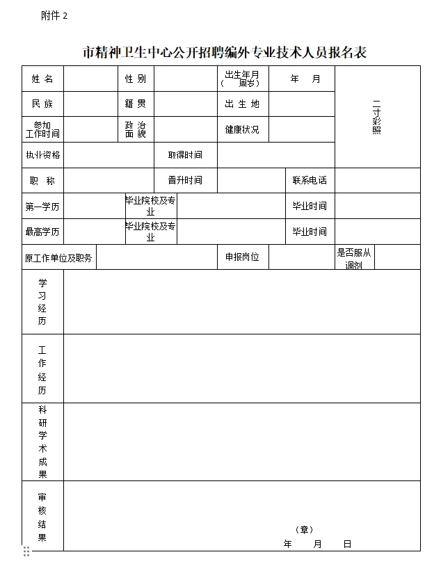 2、市精神卫生中心公开招聘编外卫生技术人员报名表