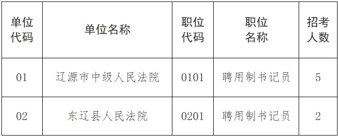 本次聘用制书记员招聘数量7名:市中院5名;东辽县法院2名。