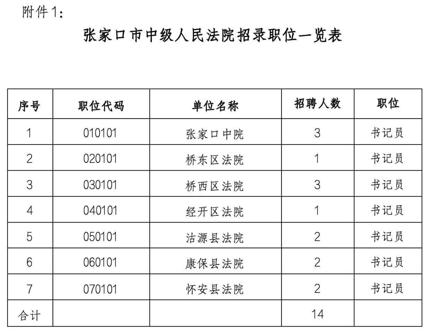 附件:1、《张家口市中级人民法院招录职位一览表》