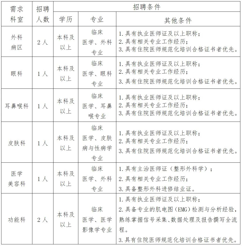 为满足医院用人需要,现结合秦皇岛市公安医院岗位空缺情况,拟面向社会公开招聘一般卫生专业技术人员。现将具体招聘事项向社会公告如下:01