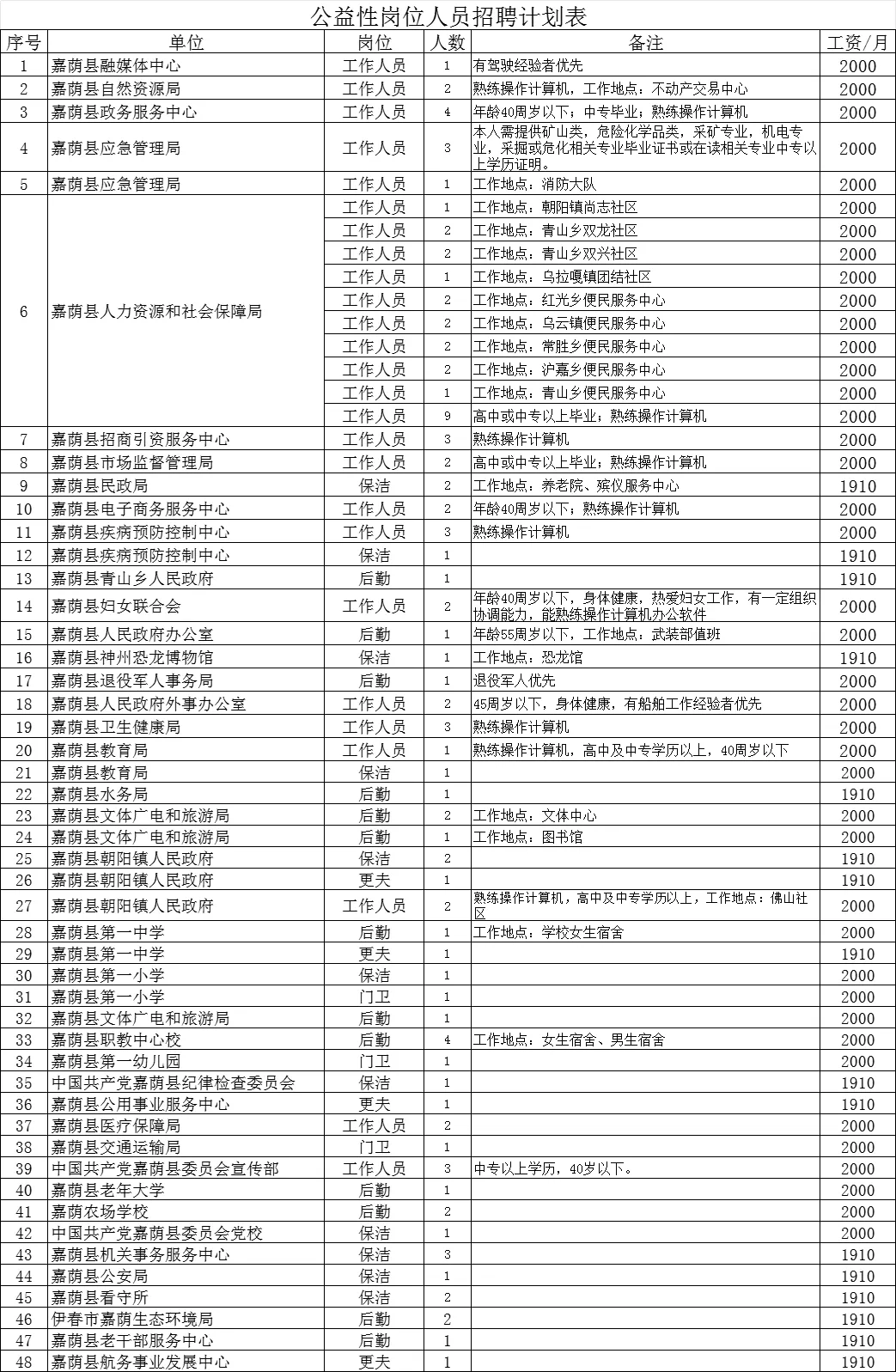 原始标题:关于嘉荫县招聘公益性岗位人员的公告