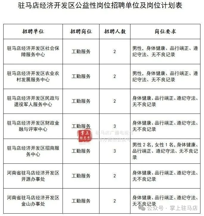 原标题:驻马店经济开发区公益性岗位招聘公告