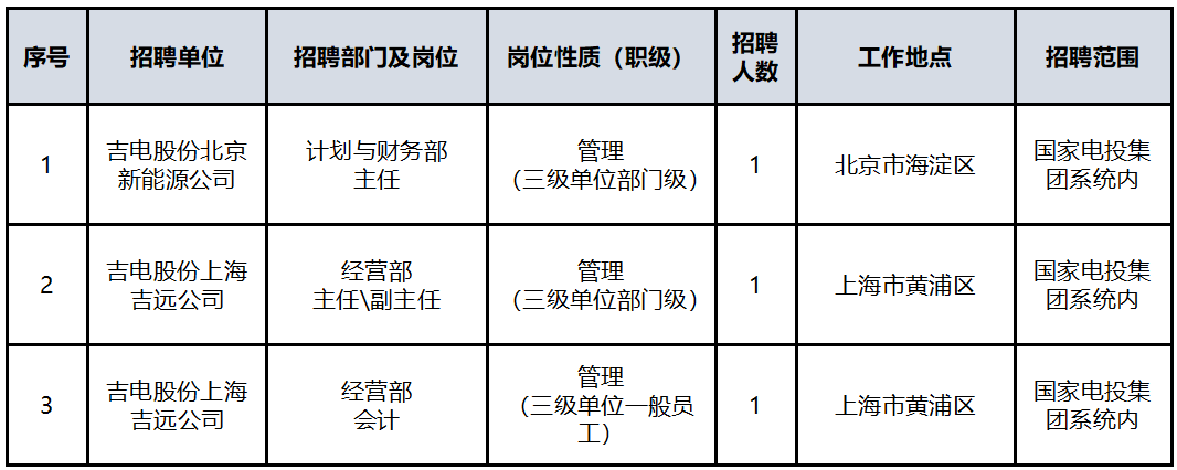 根据发展需要,现面向国家电投集团系统内公开招聘公司部分所管单位所需人才。具体事项公告如下: