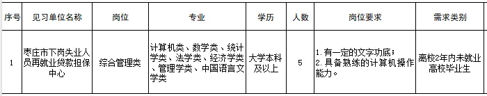 2025年枣庄市下岗失业人员再就业贷款担保中心青年就业见习招募公告