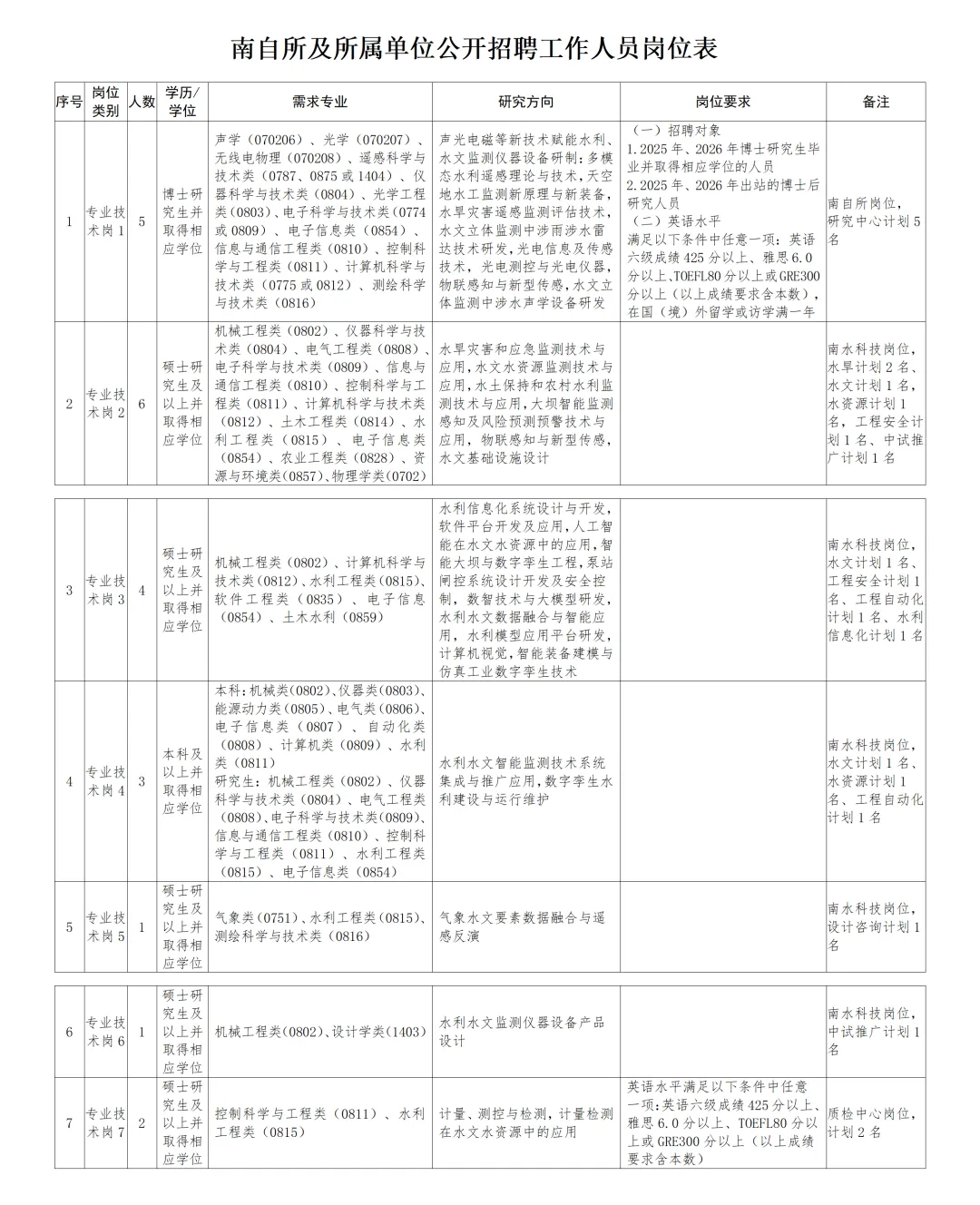 招聘岗位、招聘人数及有关要求详见《南自所及所属单位公开招聘工作人员岗位表》。