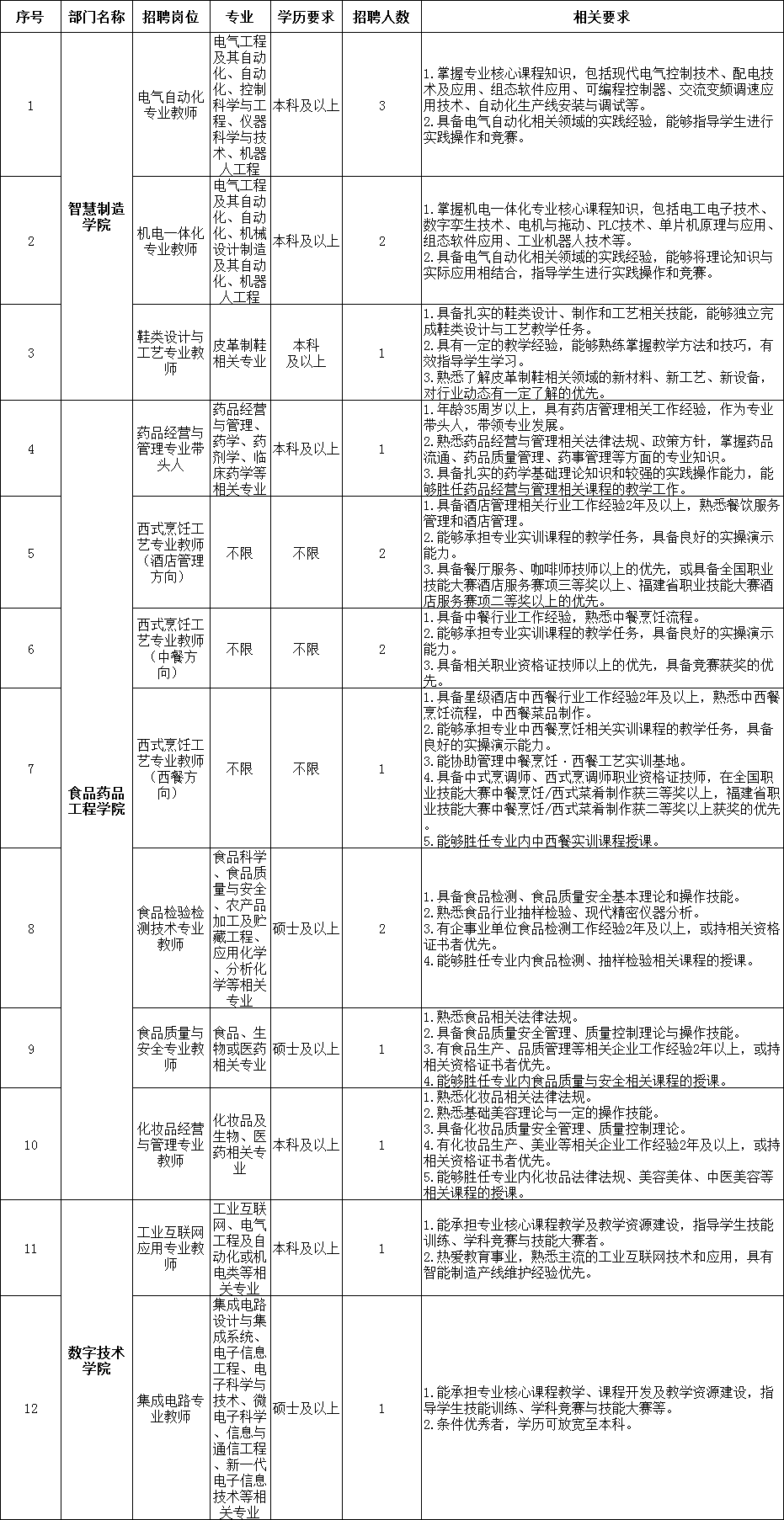 原始标题:泉州轻工职业学院2026年春季招聘计划